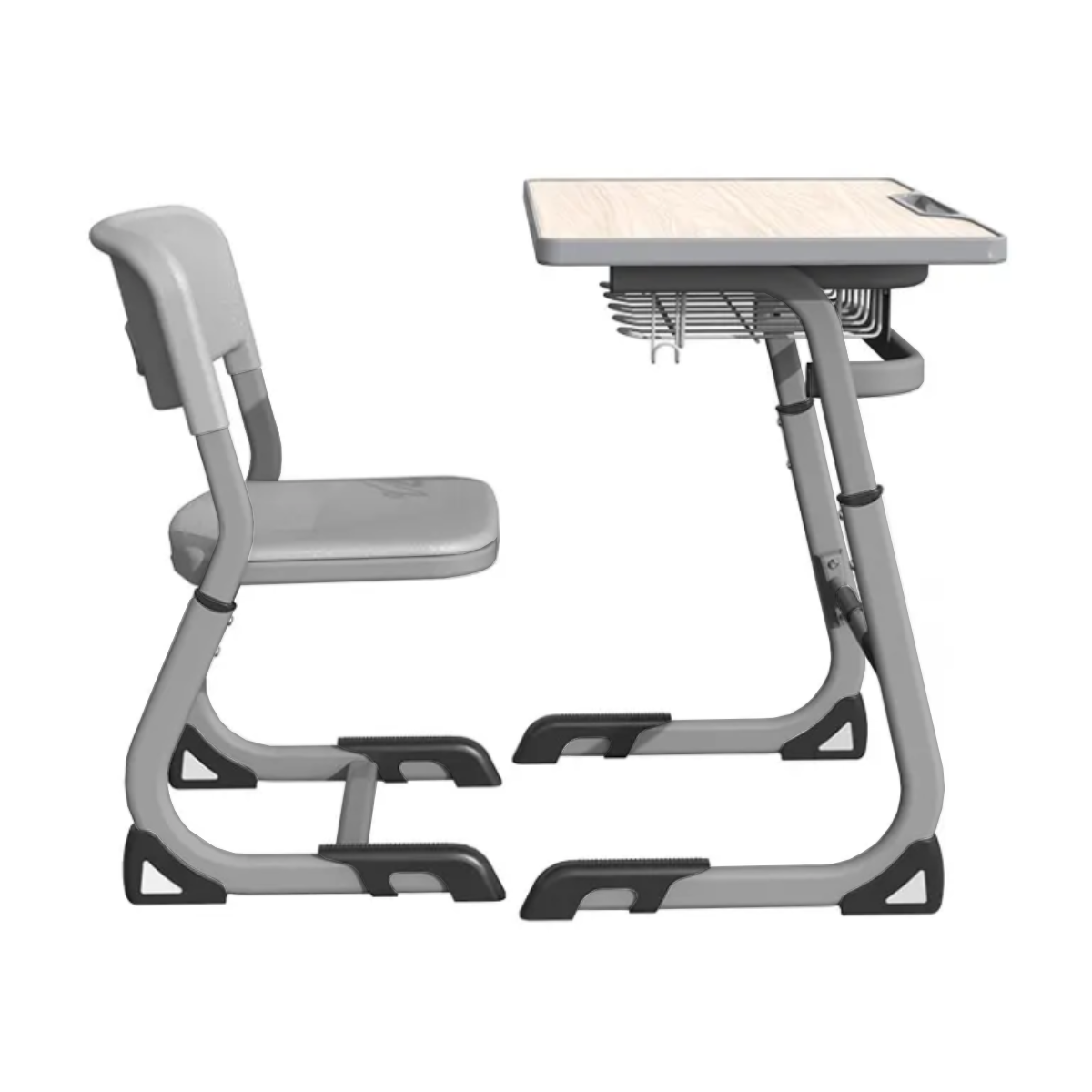Стол: метална основа с електростатично прахово боядисване (ESPC) в тъмно сив цвят (графит), регулируем в диапазон 400 – 460 mm.
