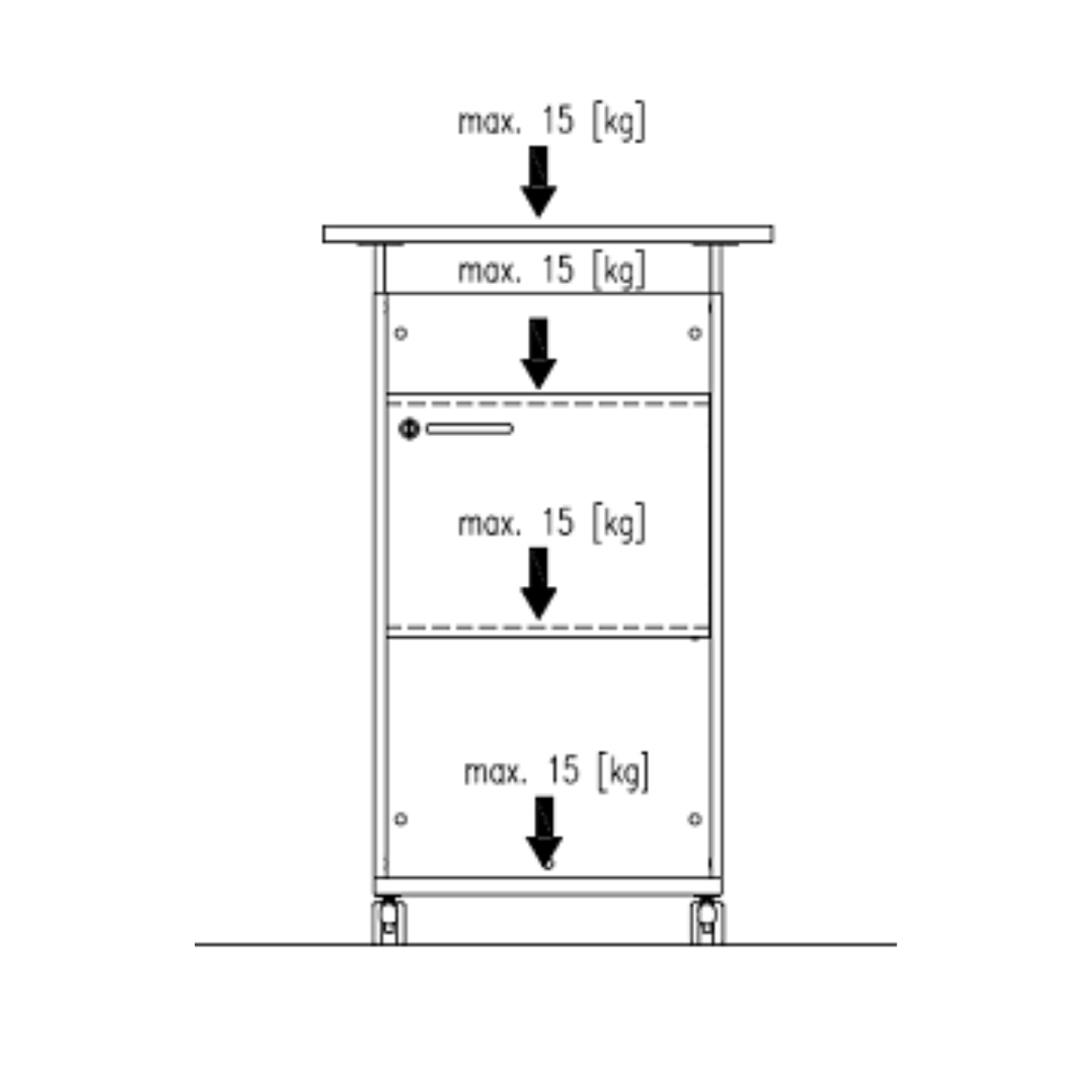 Колелца Ø 65 мм – 4 бр., от които 2 със спирачки.