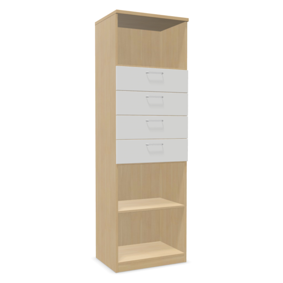 • Четири чекмеджета, с двойни телескопични плъзгачи, осигуряващи пълен достъп до 80%.
