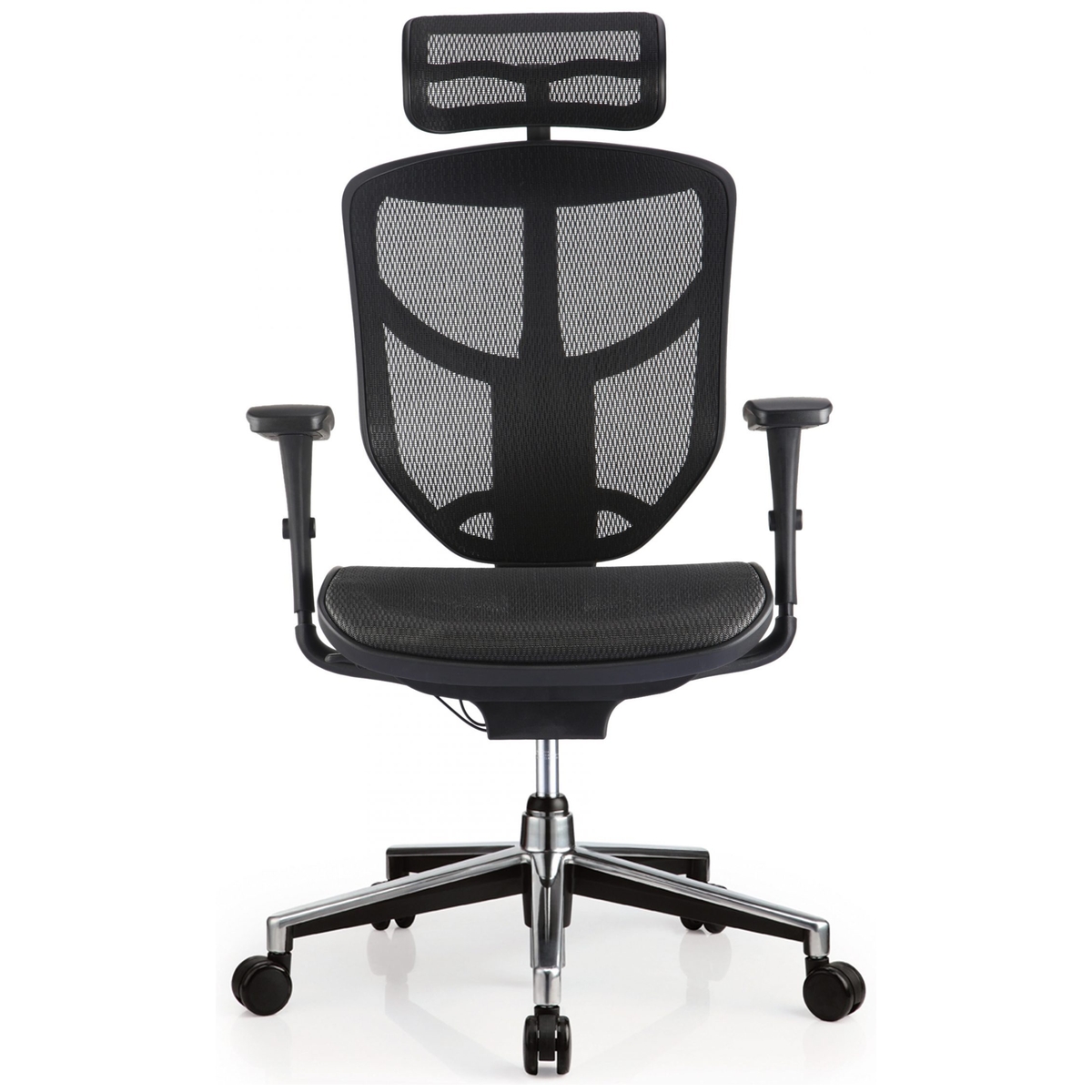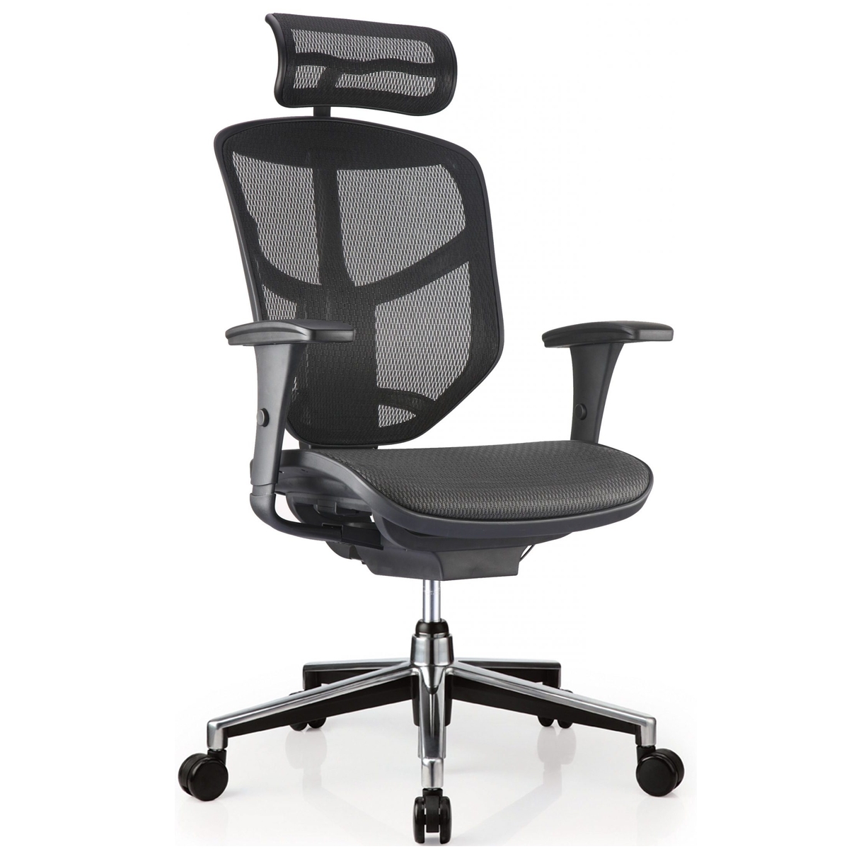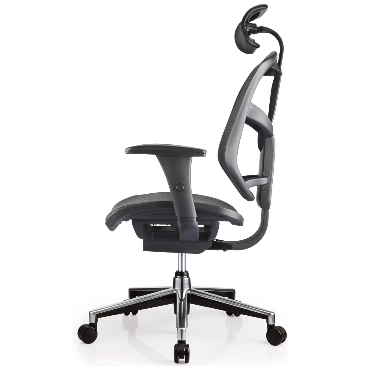 Ергономични седалка и облегалка в черна мрежа.