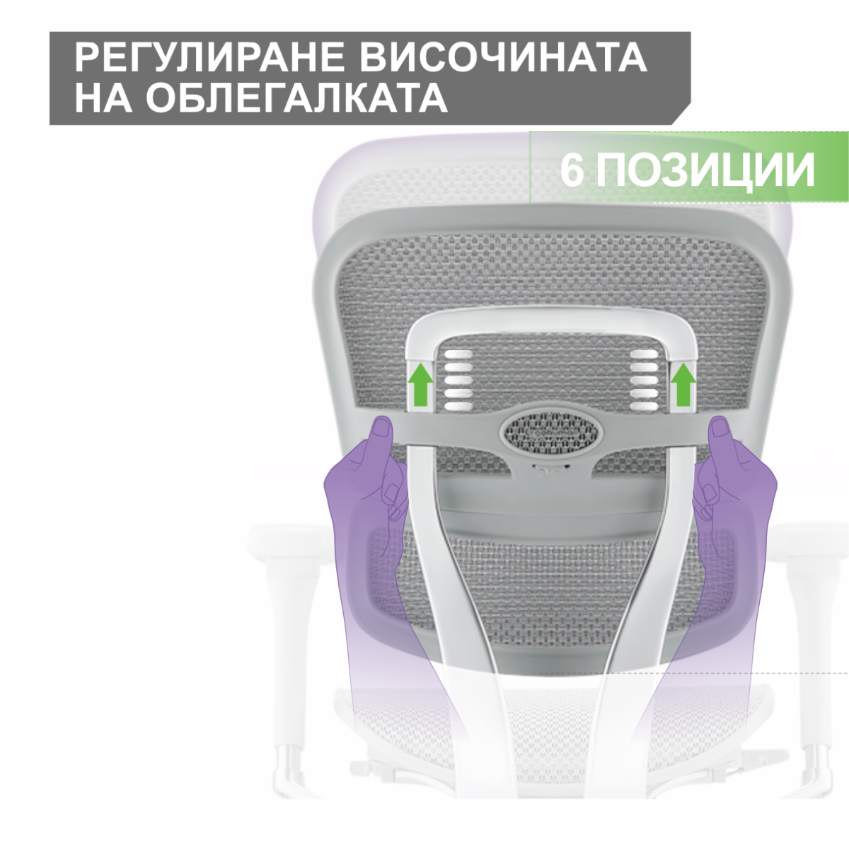 Регулиране на височината на облегалката, в 6 позиции.