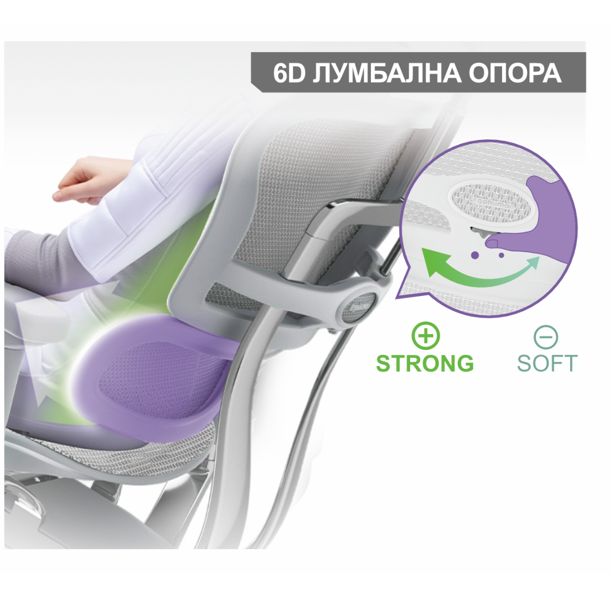 Регулируема лумбална опора на дълбочина.