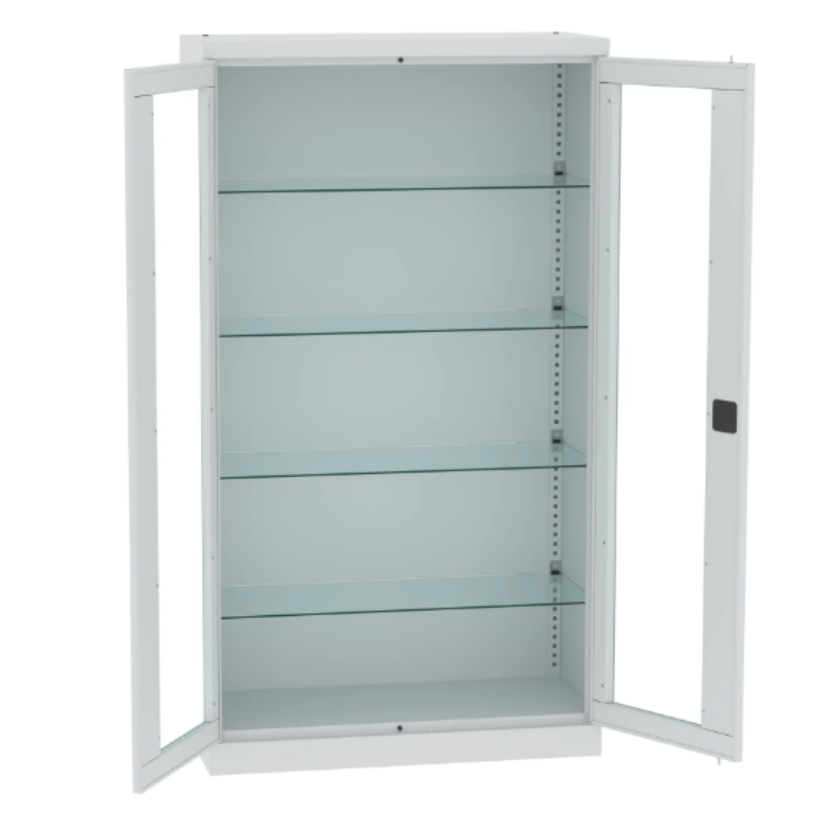 Регулируеми стъклени рафтове на височина - 4 рафта, регулират се на всеки 25 мм.