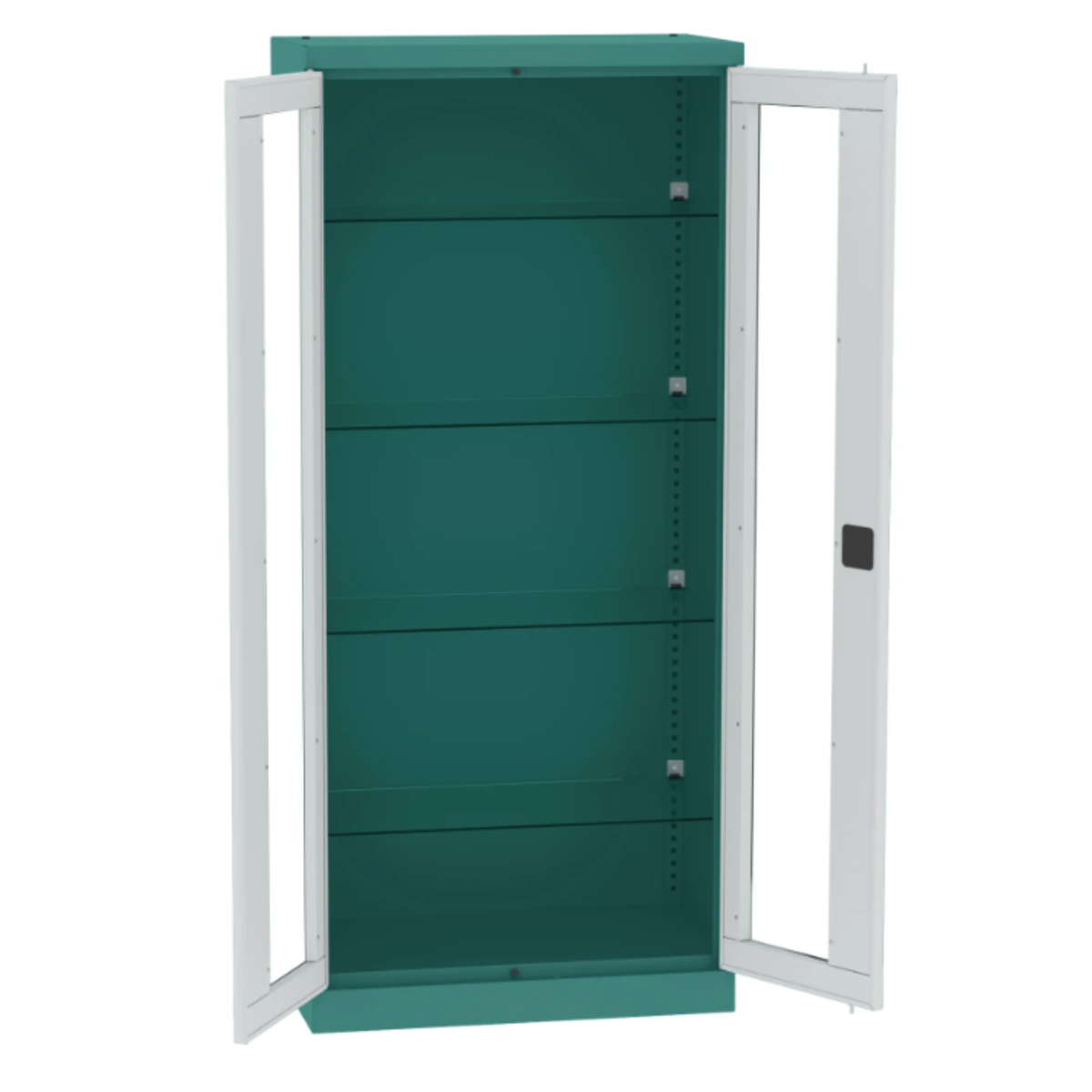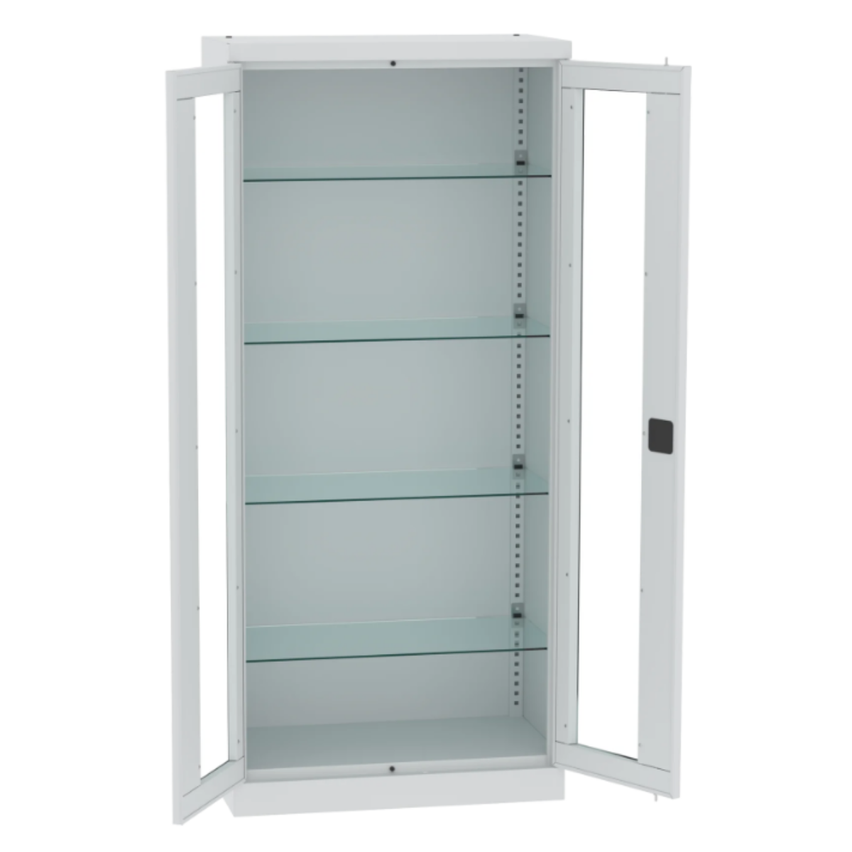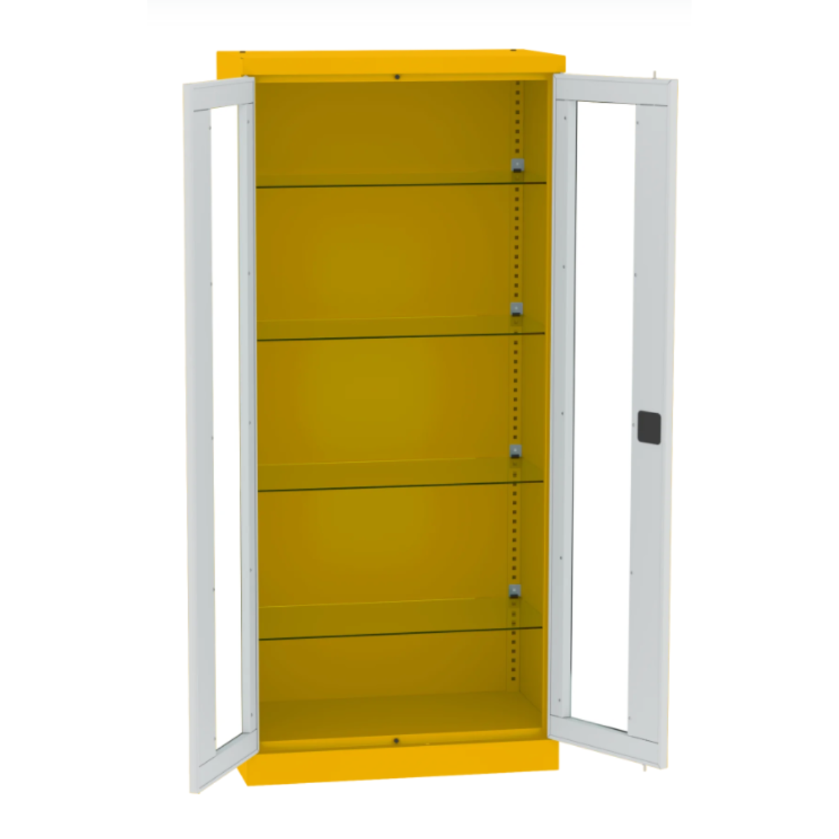 Регулируеми стъклени рафтове на височина - 4 рафта, регулират се на всеки 25 мм.