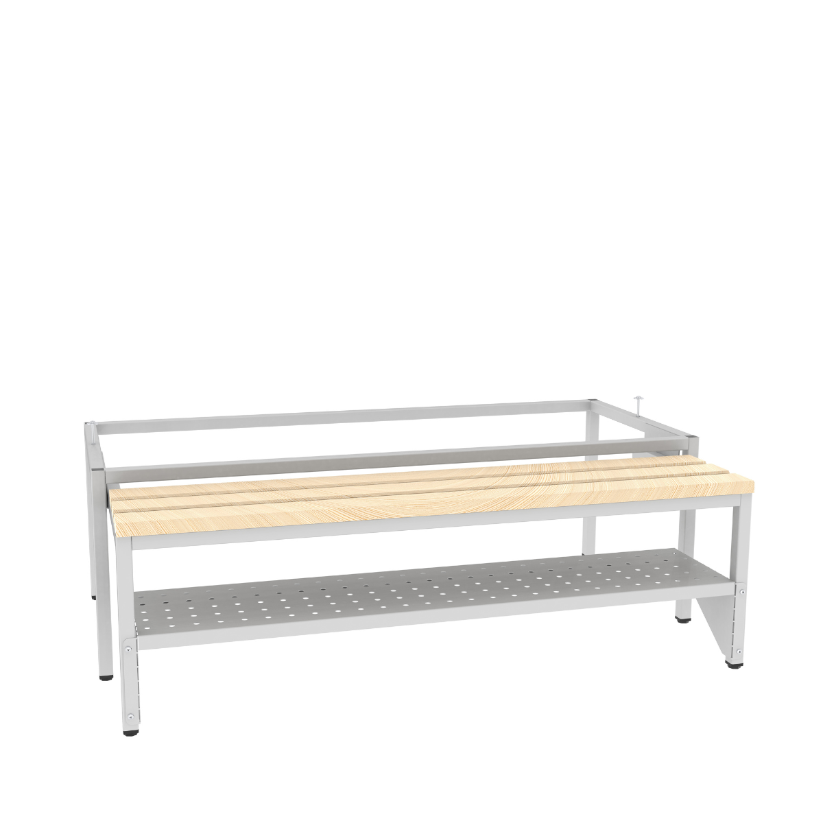 Серия метални основи с разтегателни пейки, предназначени за улесняване на хигиената и оптимизиране на пространсвото в съблекалнята.