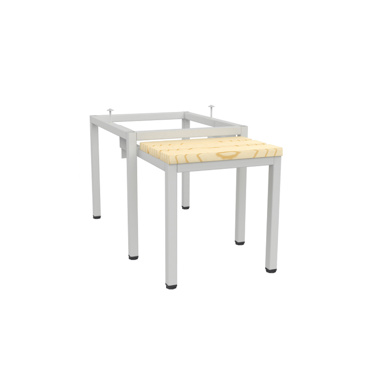 Серия метални основи с разтегателни пейки, предназначени за улесняване на хигиената и оптимизиране на пространсвото в съблекалнята.