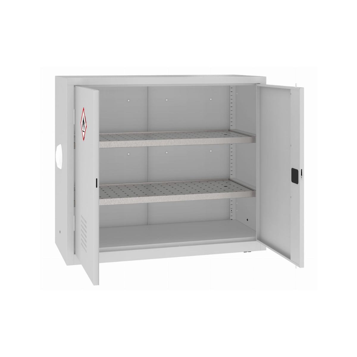 Две врати – стандартно отваряне, с етикет GHS-02 за идентификация на химична опасност.