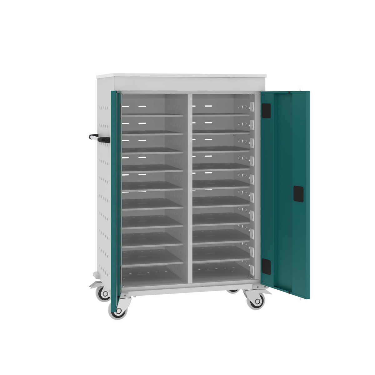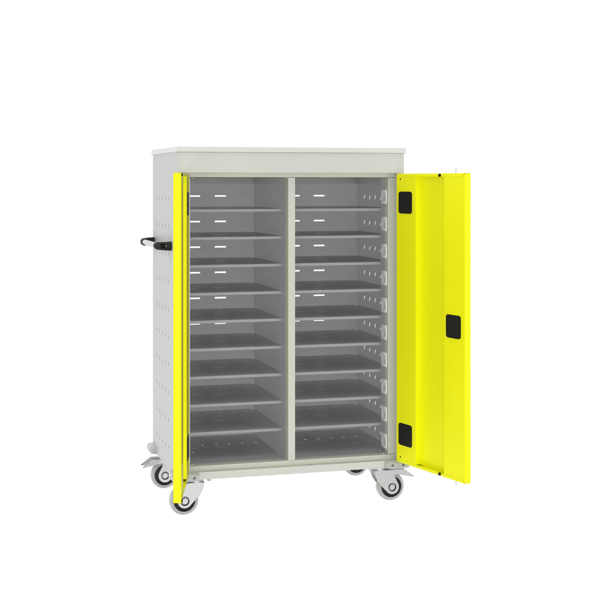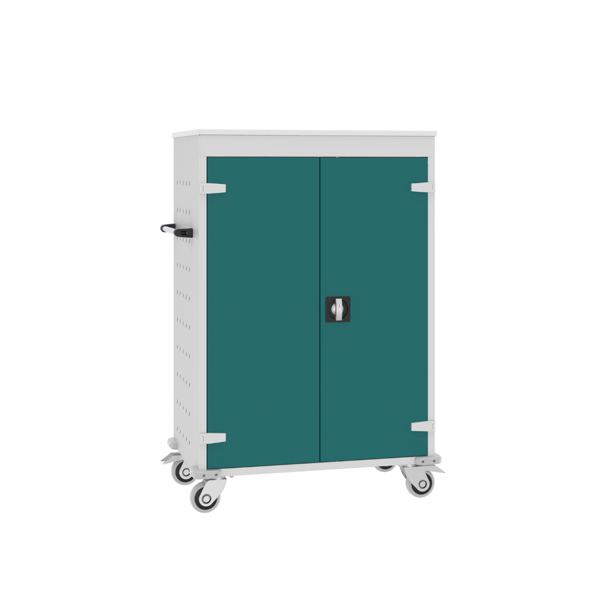 Дръжки на количката за едновременно и лесно преместване на всички преносими компютри.