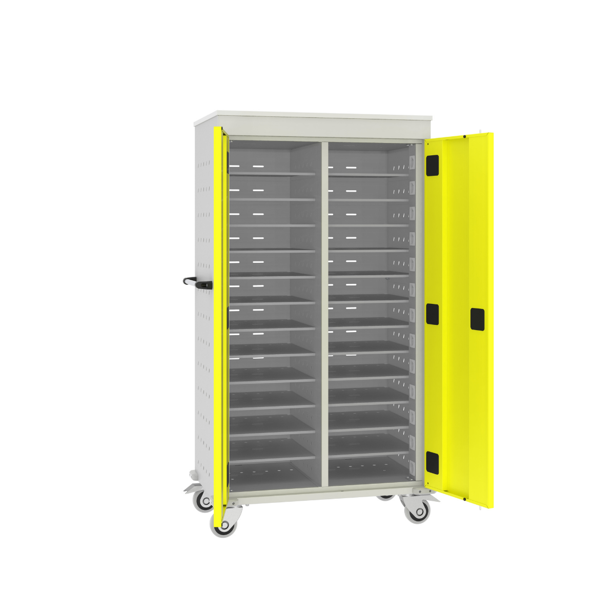Дръжки на количката за едновременно и лесно преместване на всички преносими компютри.