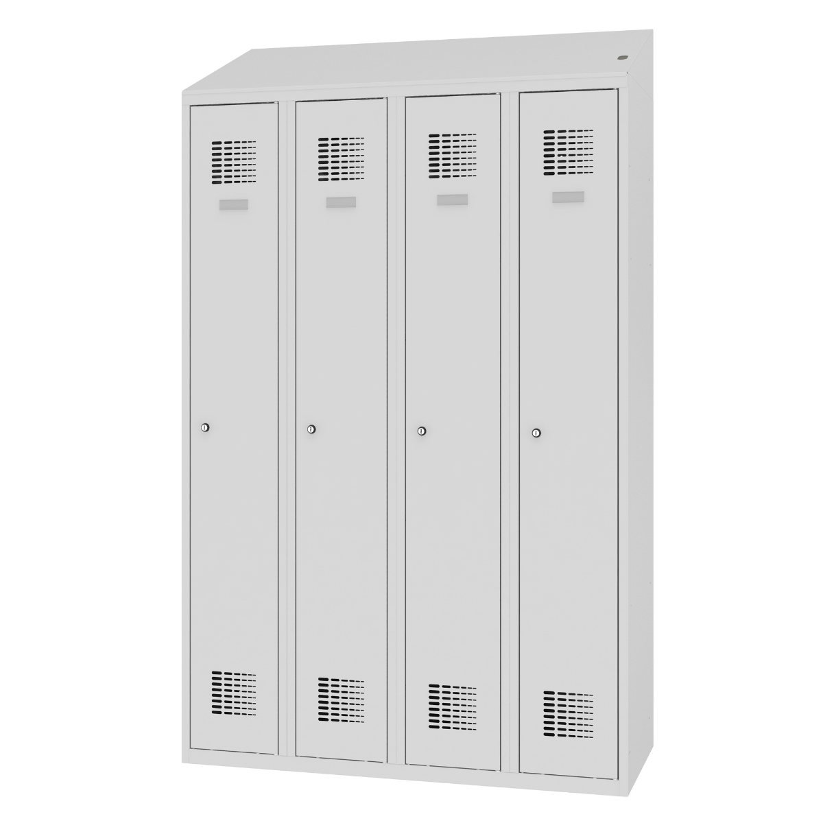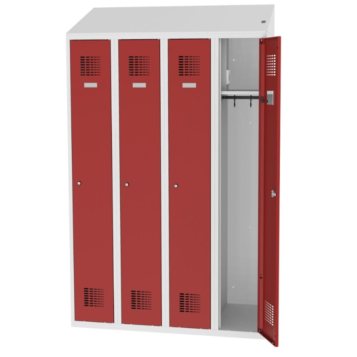 Серия метални гардероби MSUM, с контакт шуко във всяко отделение и врати – стандартно отваряне.