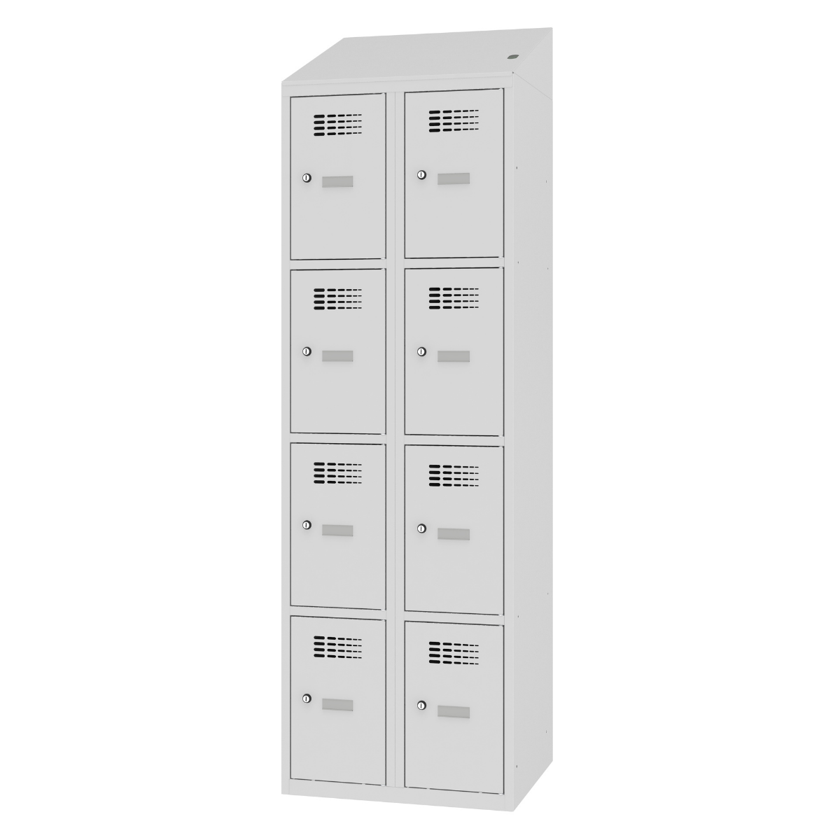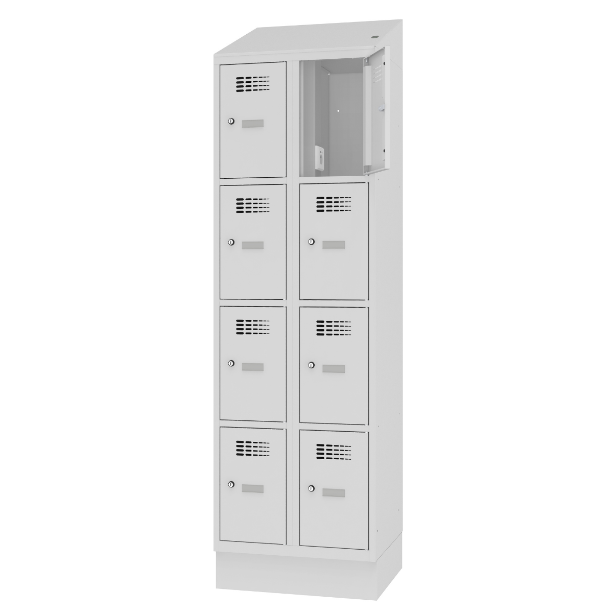 Серия метални гардероби MSUS, с контакт шуко във всяко отделение и врати – стандартно отваряне.