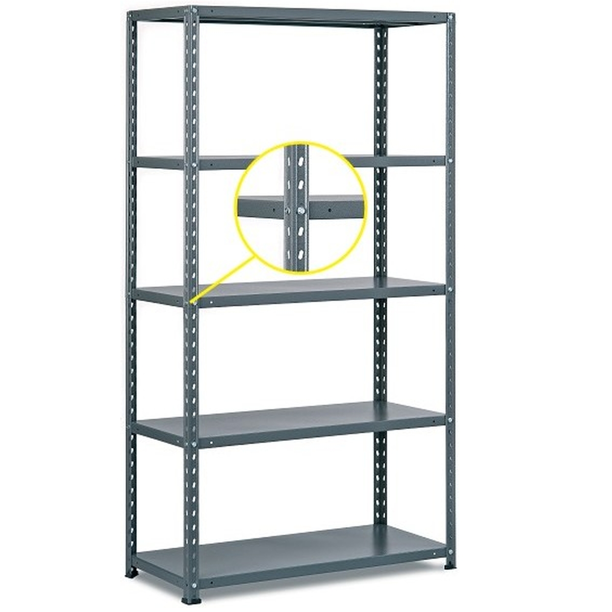 Метална сива конструкция, с метални рафтове.