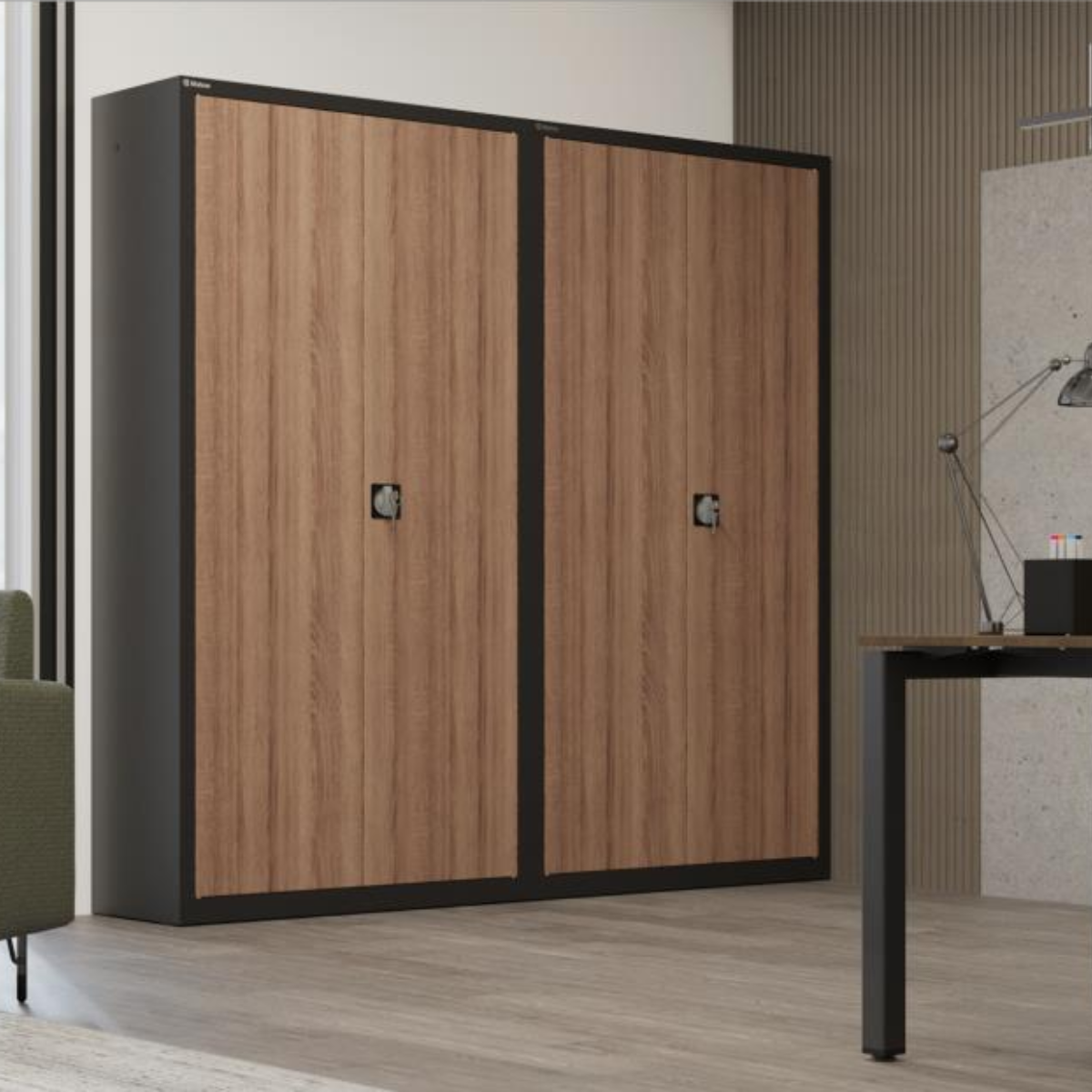 Серия метални високи архивни шкафове Sbm с врати със стандартно отваряне, с покритие - фурнир.