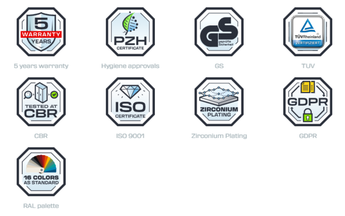 Предлага се в 16 цвята по RAL без допълнително заплащане.