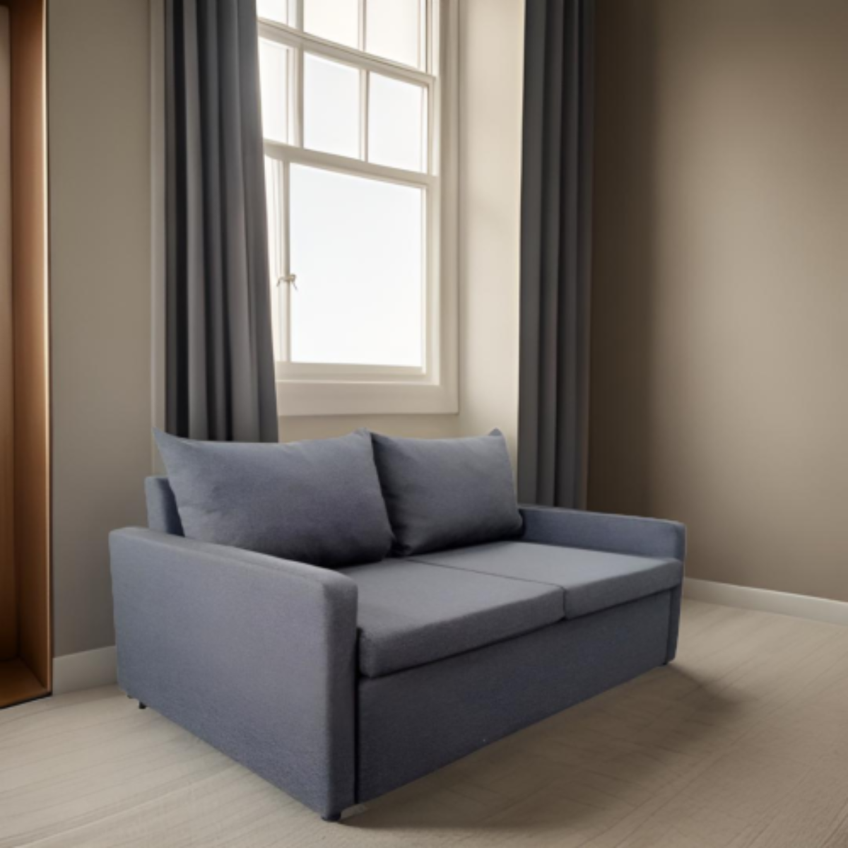 Разтегателен диван с изтеглящ се механизъм на трансформация, който осигурява удобно спално пространство.
