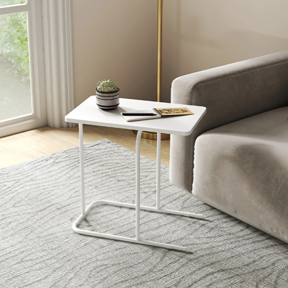 • Благодарение на компактния си C-образен дизайн на основата, тя е идеалното решение за малки пространства и динамичен начин на живот – използва се лесно като маса за лаптоп, кафе или закуска, докато сте на дивана, леглото или фотьойла.